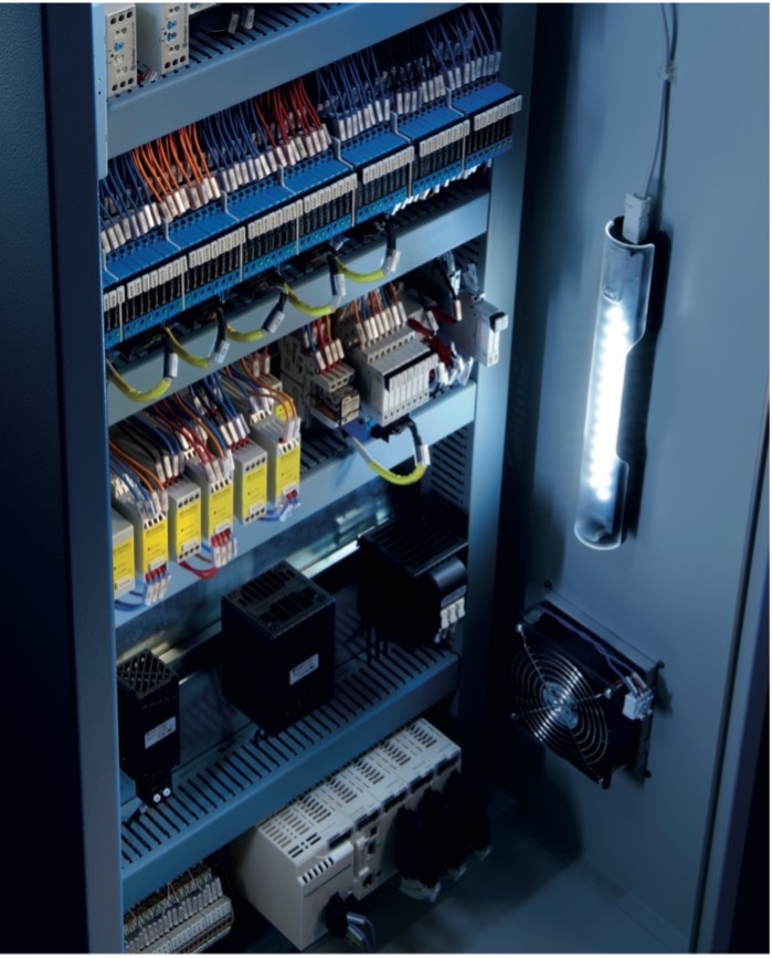 - Éclairage LED pour armoires (maintenance) : Lors des interventions de maintenance, l’intérieur de l’armoire doit être bien éclairé. Les lampes LED dédiées évitent les risques liés au travail dans une armoire sombre (mauvaise manipulation, erreurs de câblage), ou le cas échéant, d’avoir à tenir une torche. Finder propose la Série 7L : comprenant les modèles 7L.43 (6 W, 600 lumens) et 7L.46 (9 W, 1200 lumens). Ces lampes s’installent facilement (montage « 2-en-1 » aimanté ou par support à visser) et fournissent un éclairage puissant pour contrôler visuellement les circuits pendant l’entretien.