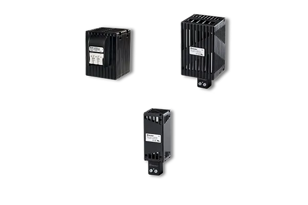 En climat froid ou humide, l’armoire peut nécessiter un chauffage interne afin d’éviter la condensation. On utilise alors des résistances chauffantes à monter sur rail DIN. La Série 7H de Finder propose des modèles modulaires de 25 à 150 W.