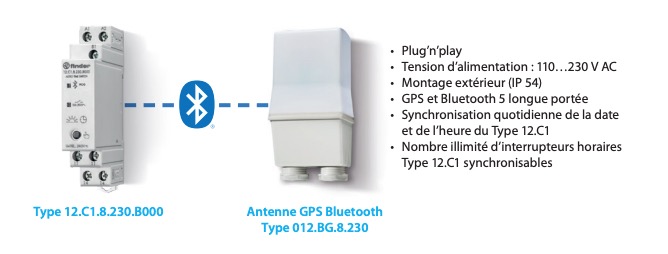 Synchronisation horaire optionnelle : antenne GPS Bluetooth Type 012.BG.8.230